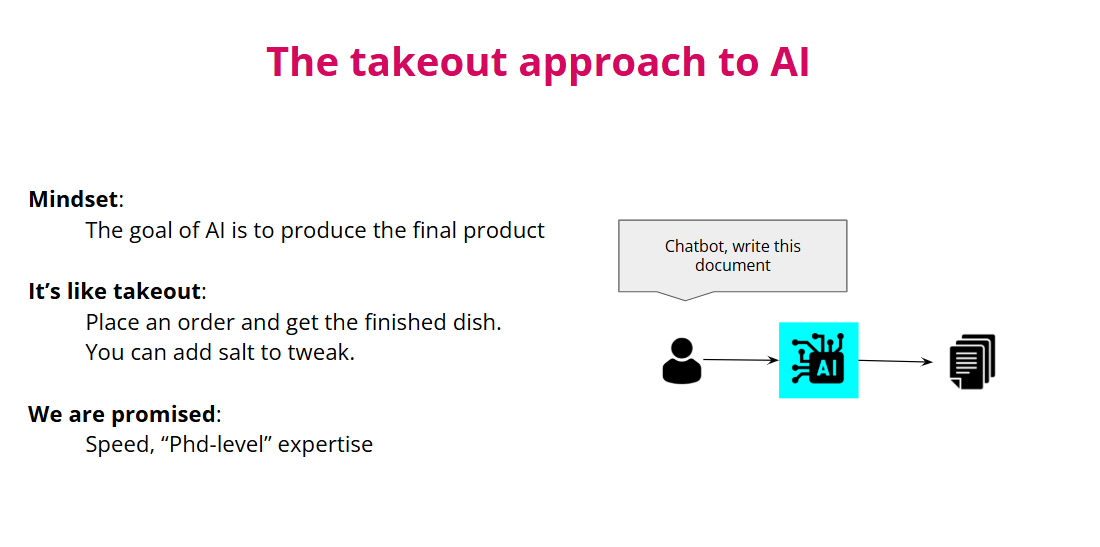 Most of us use AI like takeout. We hand over the entire task to the chatbot, like placing an order and waiting for the completed dish to arrive: